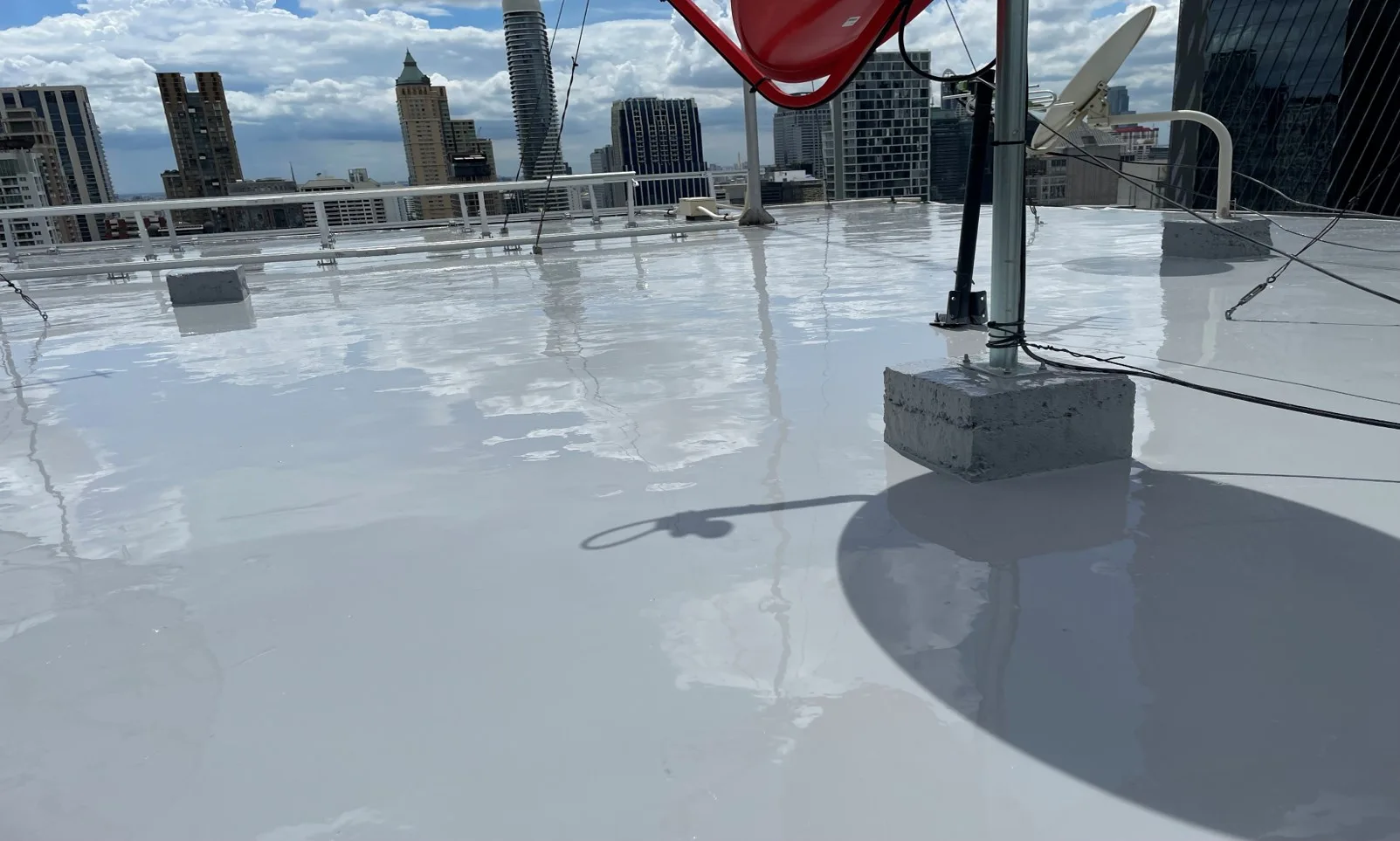 Solutions: We offered our WasserSeal 140 system, a durable one part solvent based Polyurethane system that can withstand weathering, water ponding and UV exposure.